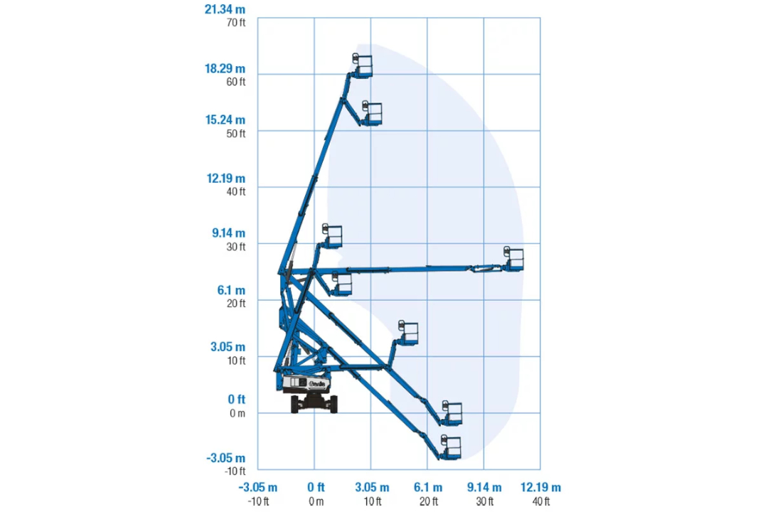 Løftehøyde opp til 20m med en kapasitet på 227kg. Rekkevidde på 11m.